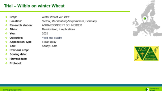 Image 3. Key parameters of the 2025 winter wheat trial conducted in Sietow, Germany.